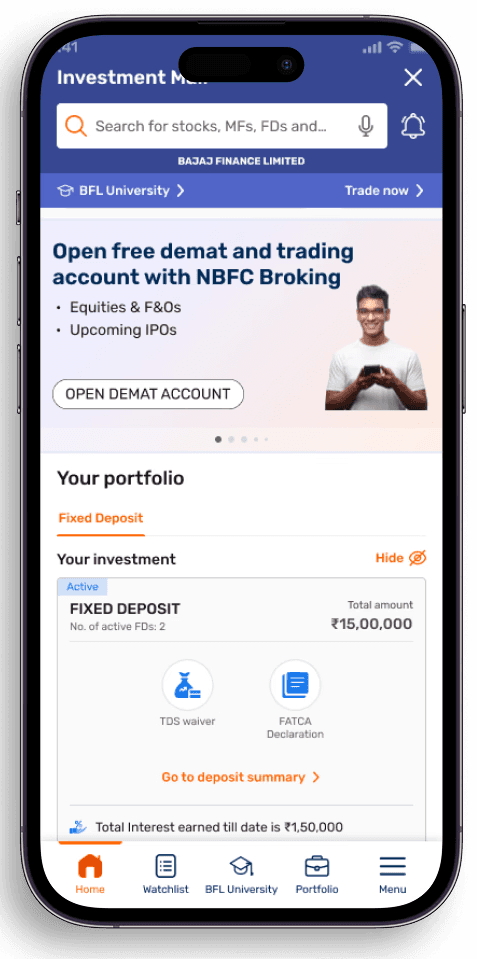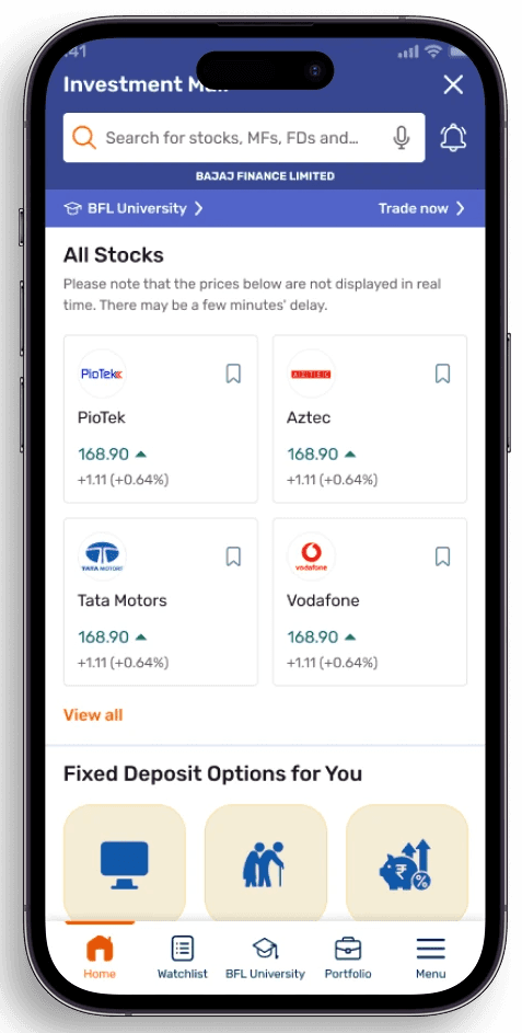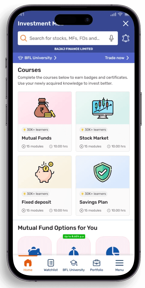 India’s largest NBFC offers a wide range of investment options like Mutual Funds, Stocks, FDs, and Savings Plans.